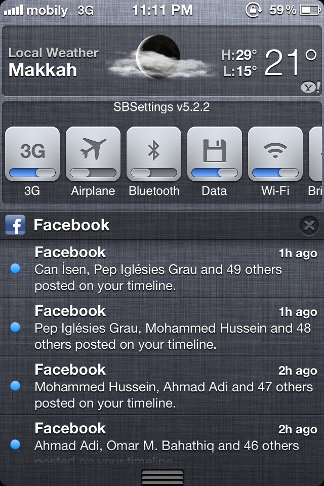 حبيت اسالك كيف اضفت sbsettings لمركز التنبيهات